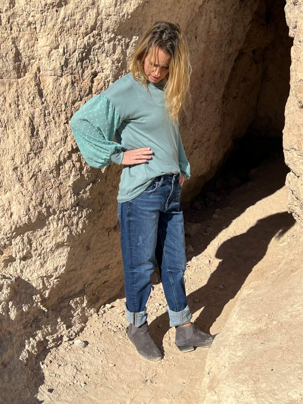 In summary, the Mint Swiss Dot Super Soft Top is a fashionable and comfortable choice for anyone looking to enhance their wardrobe. With its beautiful sage green color, soft fabric, and elegant details, this top is sure to become a staple in your collection.