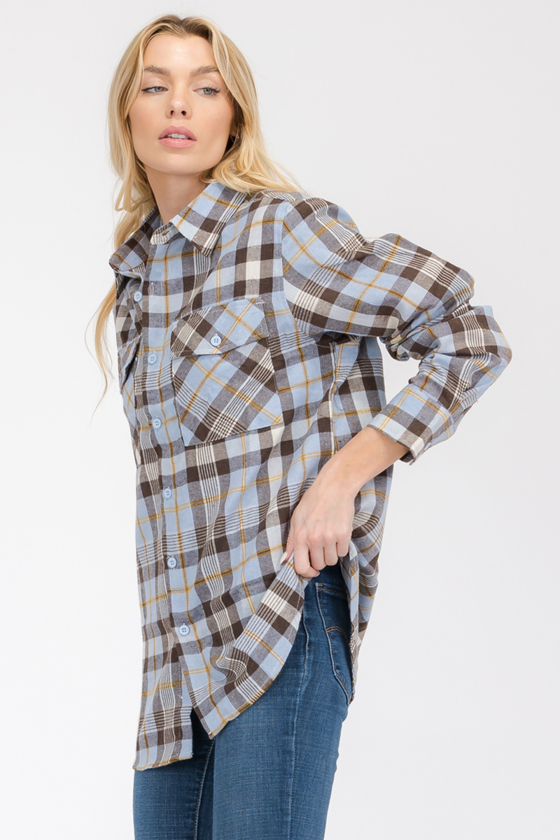 This flannel shirt is not just a fall favorite; it can be worn year-round. In the cooler months, it serves as a warm layer, while in the spring and summer, it can be worn as a lightweight outer layer. Its versatility makes it an essential item in your closet, ready to be styled for any occasion.