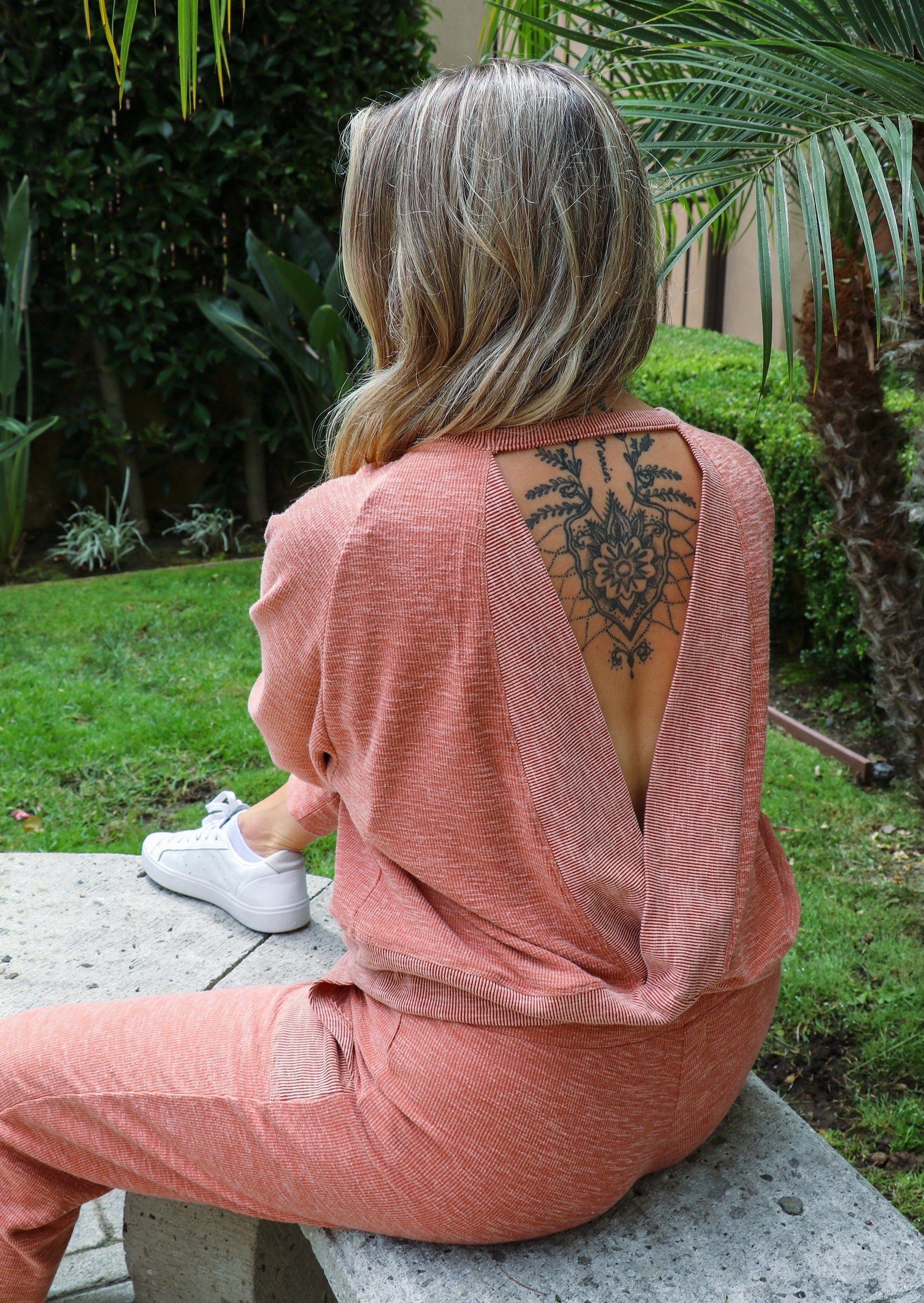 The Penny Pullover is the ultimate blend of comfort and style, designed for those who appreciate both fashion and functionality. Made from an ultra-soft brushed rib fabric, this pullover offers a luxurious feel against the skin, making it perfect for all-day wear. The standout feature of this top is its sexy open back twist detail, which adds a touch of allure and uniqueness to your outfit. Whether you're dressing up for a night out or keeping it casual, the Penny Pullover is versatile enough to suit any occasion.