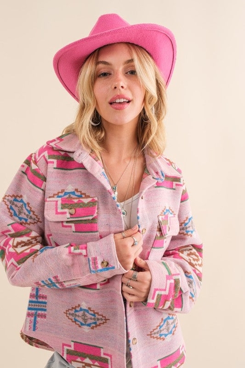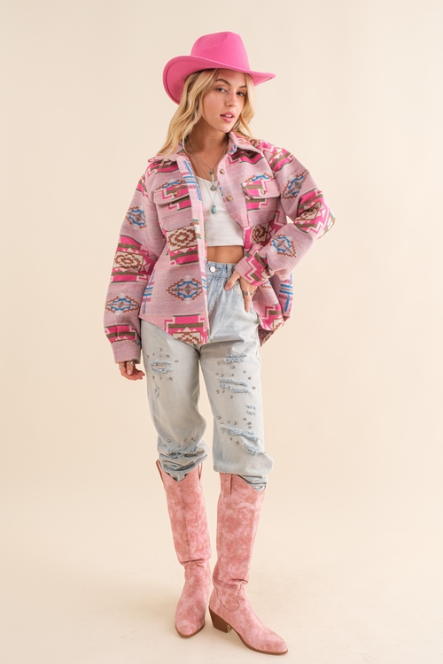Introducing our Jacquard Aztec Chest Pocket Front Loose Button Up Shirt Jacket/Shacket!
