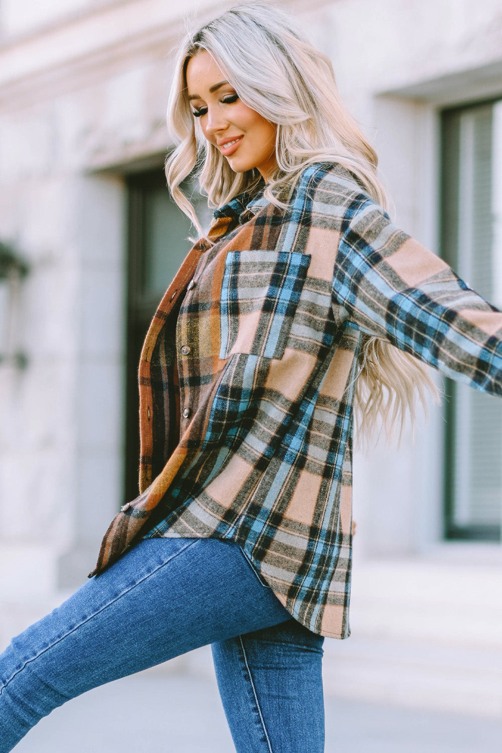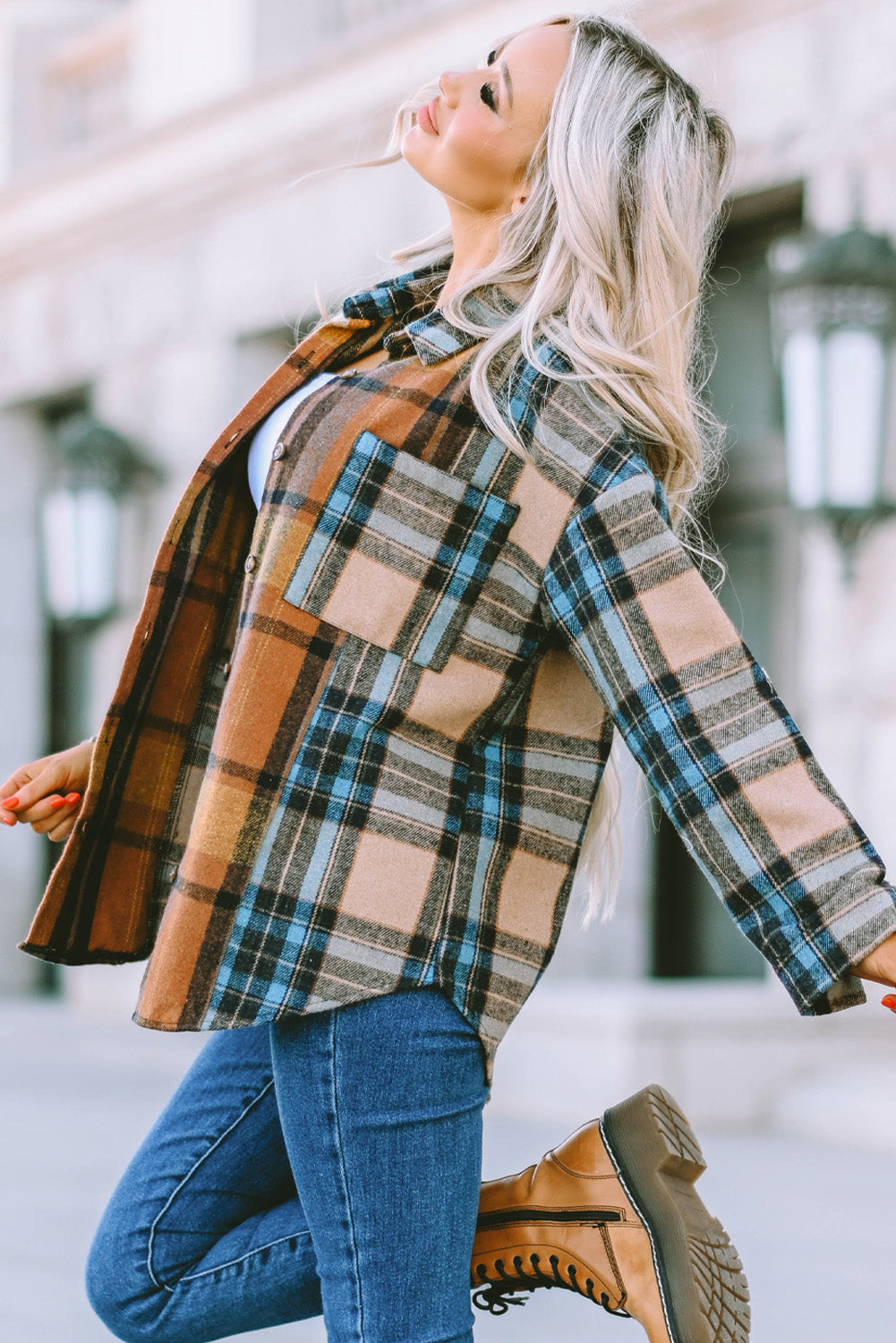 Embrace the fall season with our Plaid Color Block Buttoned Shirt with Pockets. This stylish and functional piece is a fantastic addition to any wardrobe, offering versatility, comfort, and a trendy look. Don't miss out on the opportunity to elevate your style this season!