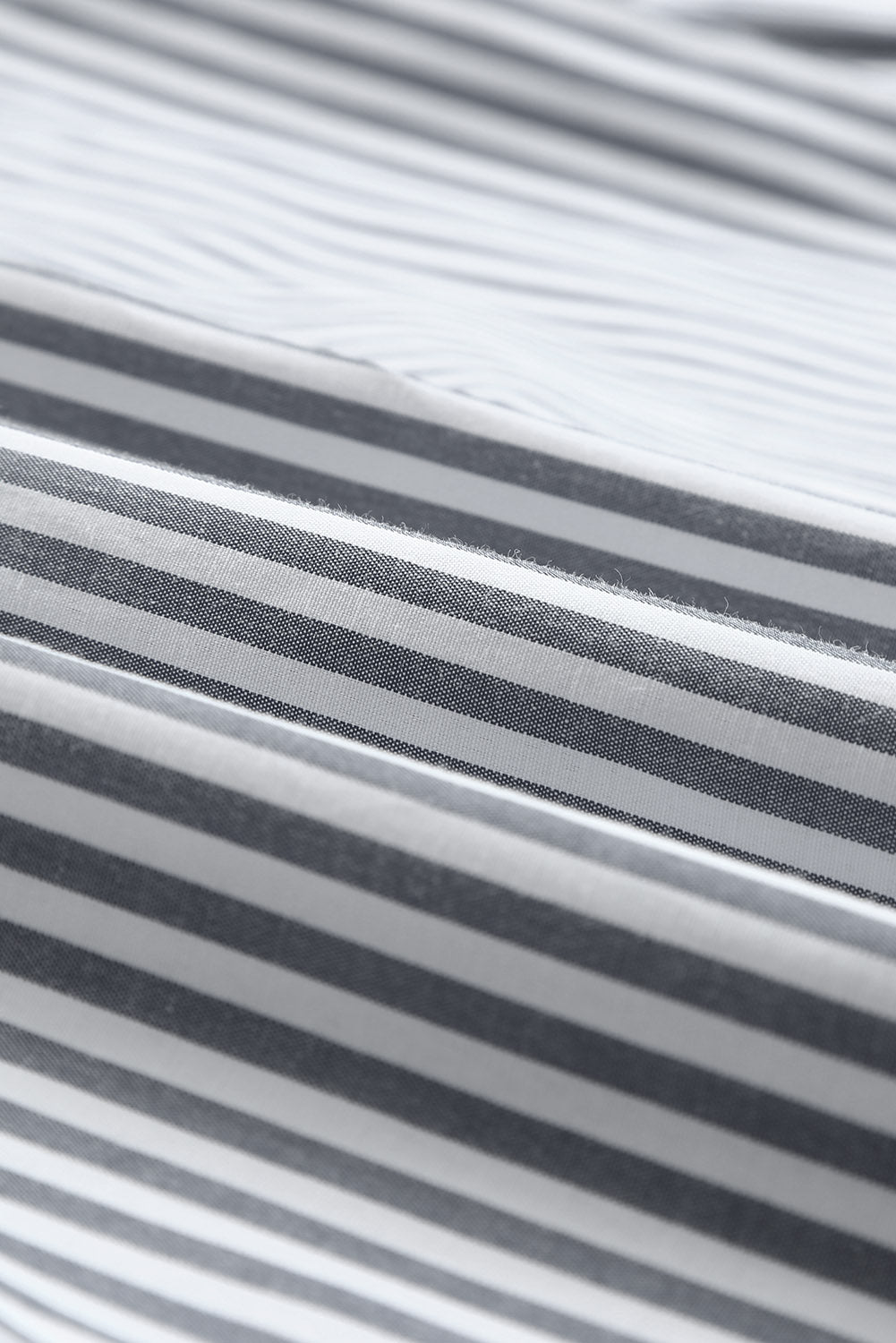 Introducing the Striped Pocketed Buttons Long Sleeve Shirt, a perfect blend of style and functionality for the modern woman. This shirt is designed to elevate your wardrobe with its chic striped pattern and practical features. Made from a comfortable blend of 56% cotton and 44% polyester, it offers a soft touch against the skin while ensuring durability and ease of care.