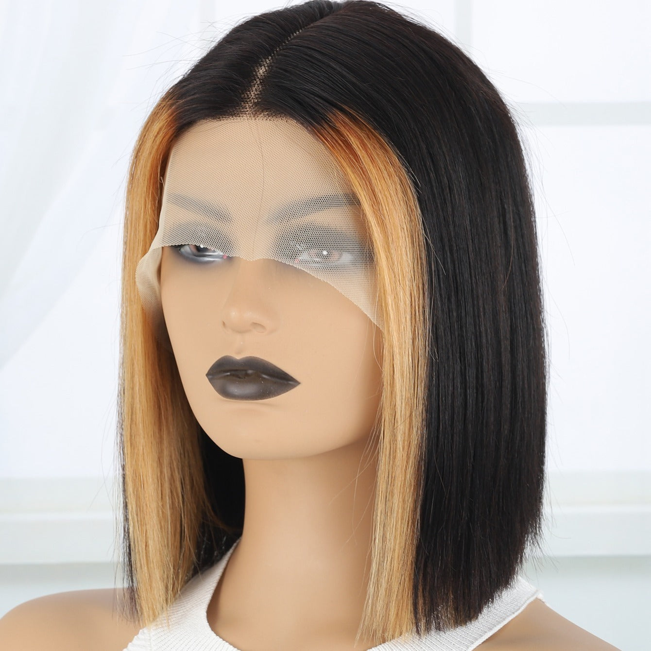 Dropship 13*4*1 Lace Front Highlight Short Straight Human Hair Wig, Fading To