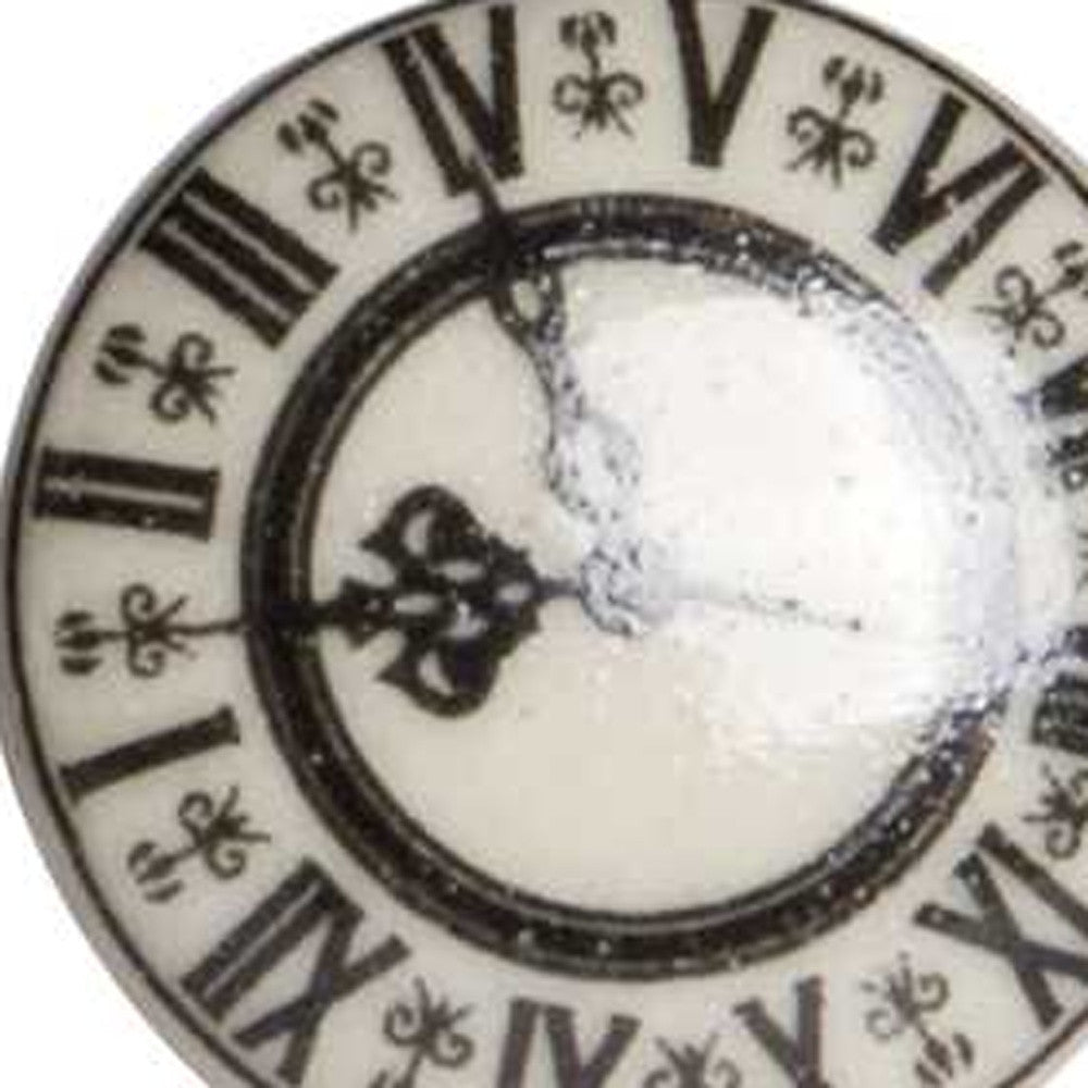 A pack of 12 ceramic knobs in cream, black, and gray colors, each measuring 1.5 inches, showcasing intricate hand-painted designs.