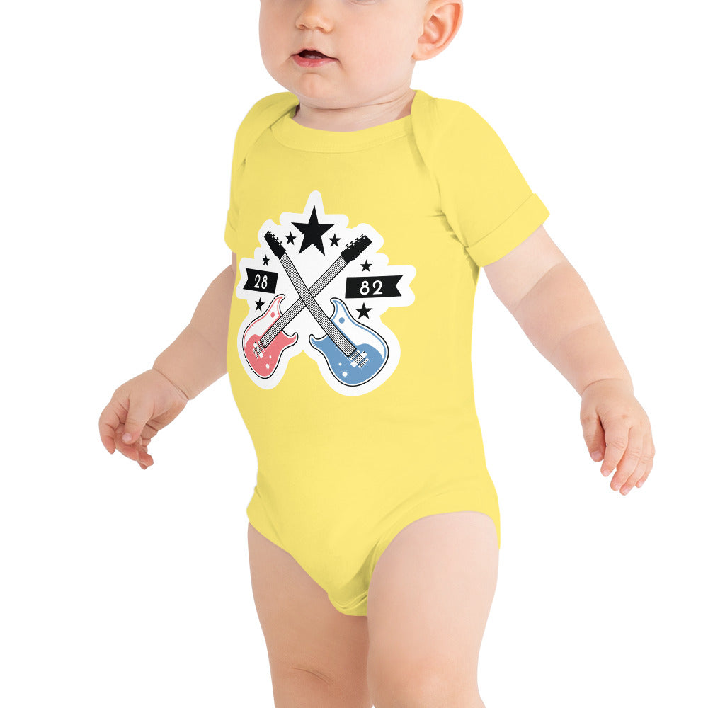At 2882Junior™, we believe in providing high-quality, stylish clothing for babies that parents can trust. Our commitment to comfort, durability, and trendy designs sets us apart. The Pre-Punk-Prep Electric Guitar Baby Short Sleeve One Piece is a testament to our dedication to quality and style, making it a must-have for your little one.