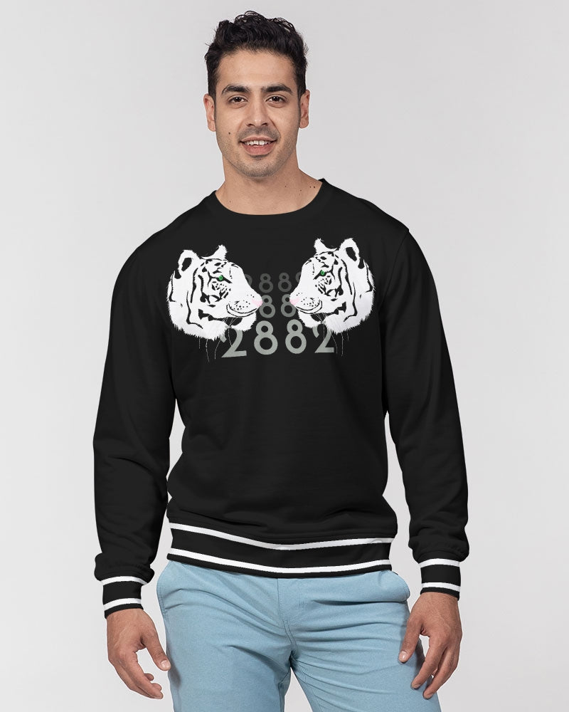 Introducing the 2882Sport™ Tropics Of OZ Men's Tigers Crewneck Pullover, a stylish and comfortable addition to your wardrobe. This pullover is designed for those who appreciate both fashion and functionality. With its unique design featuring the majestic white tigers, this crewneck is perfect for making a statement while keeping cozy.