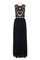 Adrianna Papell Crew Neck Sleeveless Floral Embroidered Crepe Top Ruched Mesh Dress; Fabric: Embroidered Crepe & Mesh (100% Polyester) Lining (100% Polyester); Fabric Content: LINED
