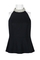 Adrianna Papell Embellished High Halter Neck Zipper Back Crepe Top