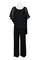 Adrianna Papell Scoop Neck Asymmetrical Popover Chiffon Cape Zipper Back Solid Jersey Jumpsuit; Fabric: Jersey & Chiffon (95% Polyester 5% Spandex) Lining (100% Polyester); Fabric Content: LINED