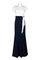 Adrianna Papell V-Neck Short Sleeve Gathered Side ZIpper Back Color Blocked Crepe Dress; Fabric: Crepe (95% Polyester 5% elastane) Lining (100% Polyester); Fabric Content: LINED