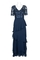 Adrianna Papell V-Neck Short Sleeeve Symetrical Tiered Zipper Back Embroidered Mesh & Chiffon Dress; Fabric: Embroidered Mesh & Chiffon (100% Polyester) Lining (100% Polyester); Fabric Content: LINED