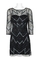 Aidan Mattox Boat Neck Illusion 3/4 Sleeve Zipper Back Embellished Mesh Dress; Fabric: Embellished Mesh (100% Polyester) Lining (100% Polyester); Fabric Content: LINED
