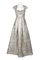 Aidan Mattox Queen Anne Neck Cap Sleeve Bodycon Box Pleat A-Line Cutout Back Metallic Jacquard Dress; Fabric: Metallic Jacquard (100% Polyester) Lining (100% Polyester); Fabric Content: LINED