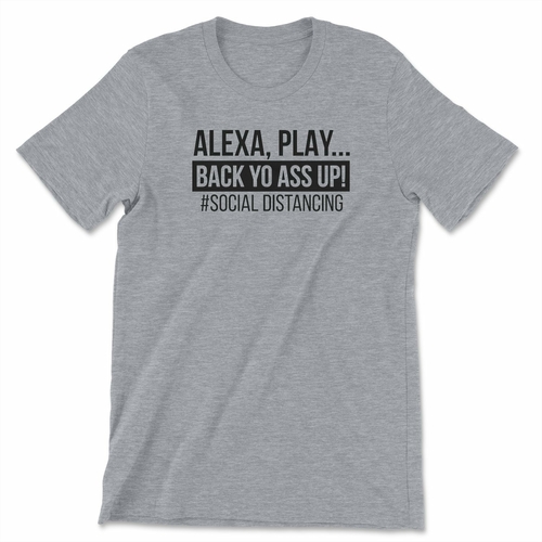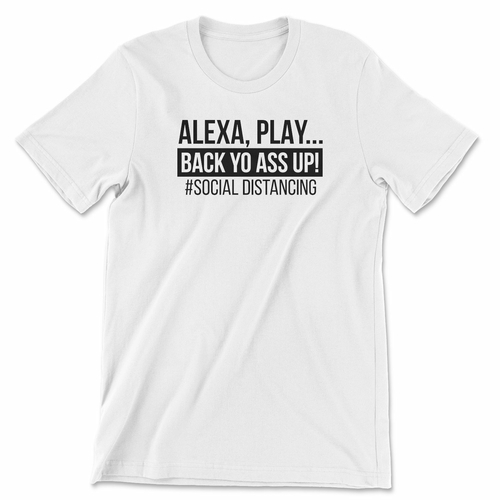 The Alexa Play Back Yo A** Up Tee is a unique and playful addition to your wardrobe, designed to bring a smile while promoting social distancing. This shirt features a catchy phrase that resonates with the current times, making it not just a piece of clothing but a statement. Whether you're lounging at home or heading out for a casual outing, this tee is perfect for expressing your personality.