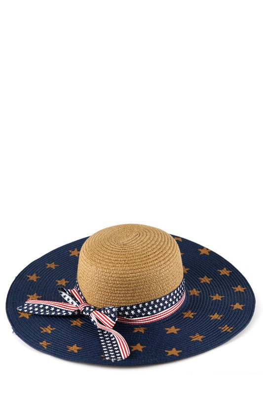 A stylish American flag floppy hat with a wide brim, showcasing the vibrant stars and stripes design, perfect for summer outings.