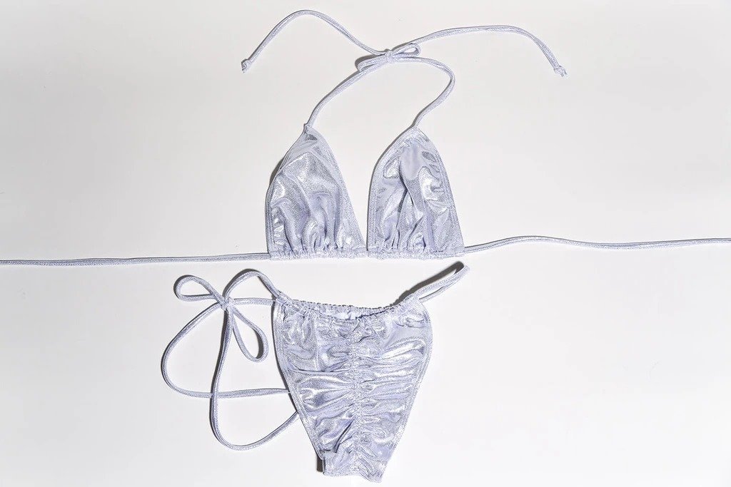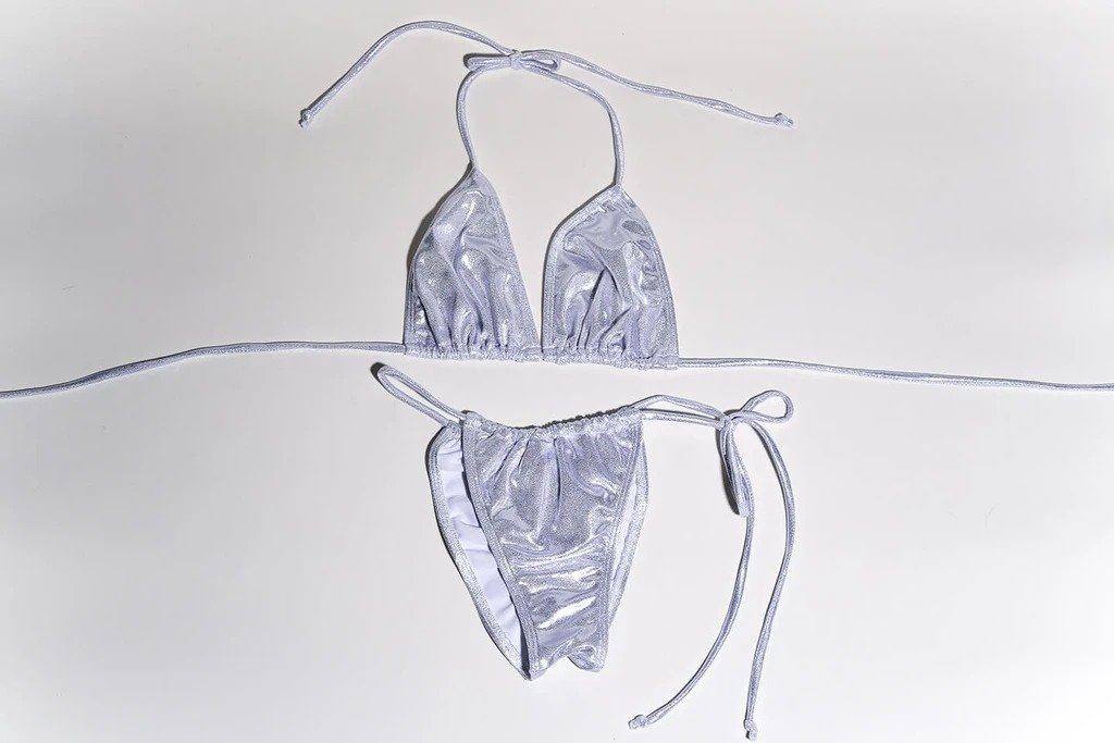The model featured in the product images is wearing a size small, showcasing how the Andrea set fits on a real person. This can help you gauge how the outfit may look on you, but remember that the adjustable strings allow for a customized fit regardless of your size.