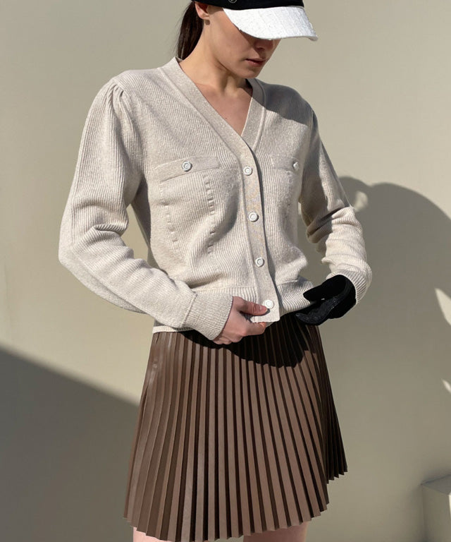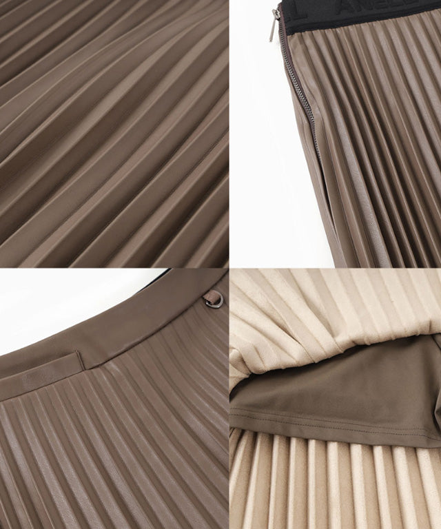 Introducing the Anell Golf Bold Pleated Skirt in a rich brown hue, a perfect blend of style and comfort. This skirt is crafted from a luxurious suede-combined leather that not only looks stunning but also provides warmth and durability. The unique design features abundant pleats that create a beautiful silhouette, falling gracefully in a straight line.