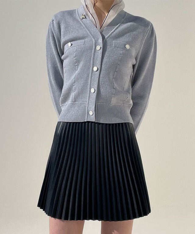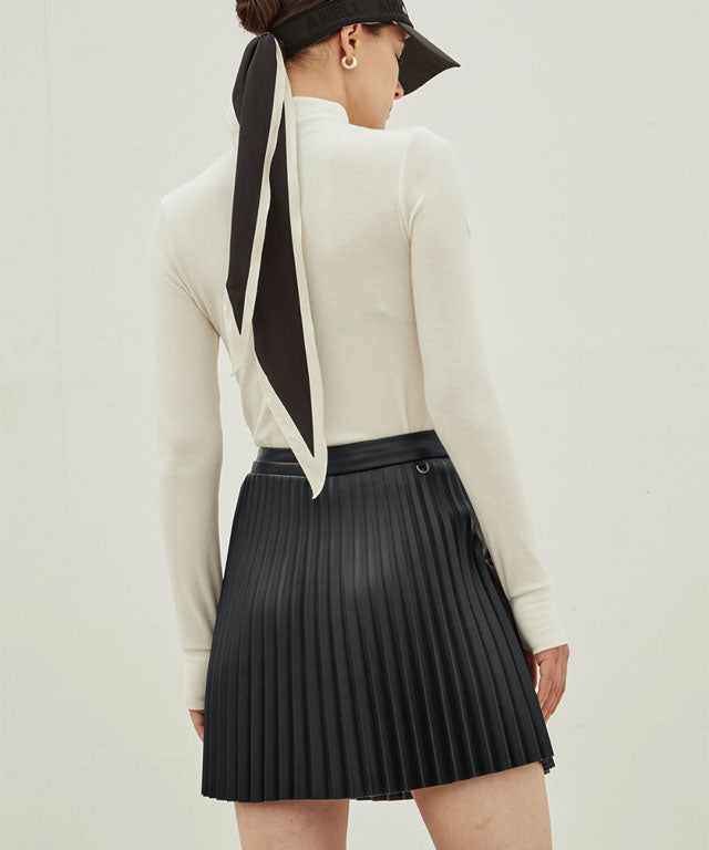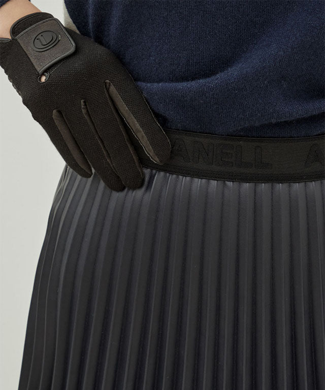 The Anell Golf Bold Pleated Skirt features a unique combination of suede and leather, offering a luxurious feel that is both soft and durable. The inner side of the skirt is finished with suede, ensuring warmth and comfort during those cooler days on the golf course. The bold pleats create a striking silhouette that falls gracefully, making it a standout piece in your golf attire.