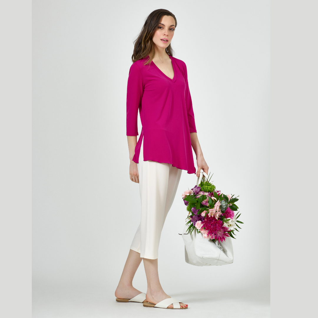 To cater to different tastes, our Angled Top with 3/4 sleeves is available in a variety of colors. Whether you prefer classic neutrals or vibrant hues, there’s a shade for everyone. This variety allows you to express your personal style and find the perfect match for your wardrobe.