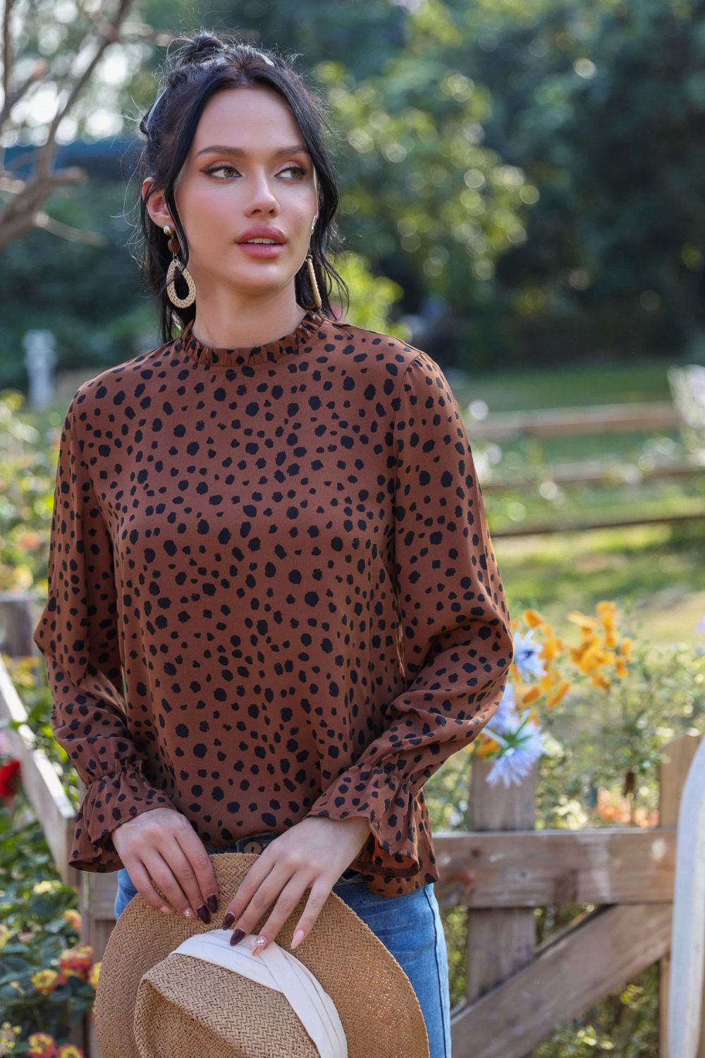Choosing the Animal Print Frill Neck Flounce Sleeve Blouse means opting for a piece that combines fashion with functionality. Its unique design elements, such as the frill neck and flounce sleeves, set it apart from ordinary blouses. Additionally, the animal print pattern is timeless and trendy, ensuring you stay fashionable no matter the season.
