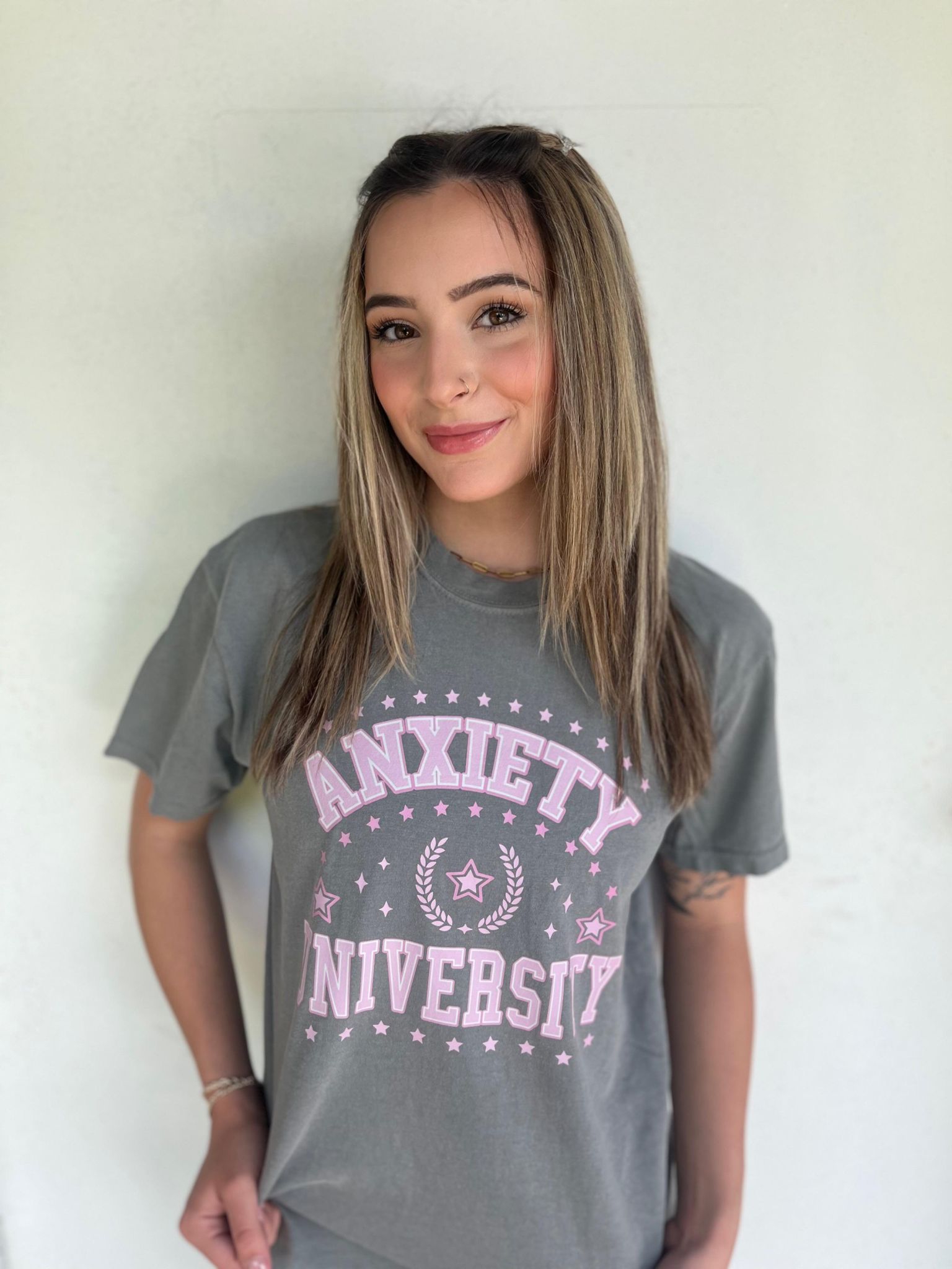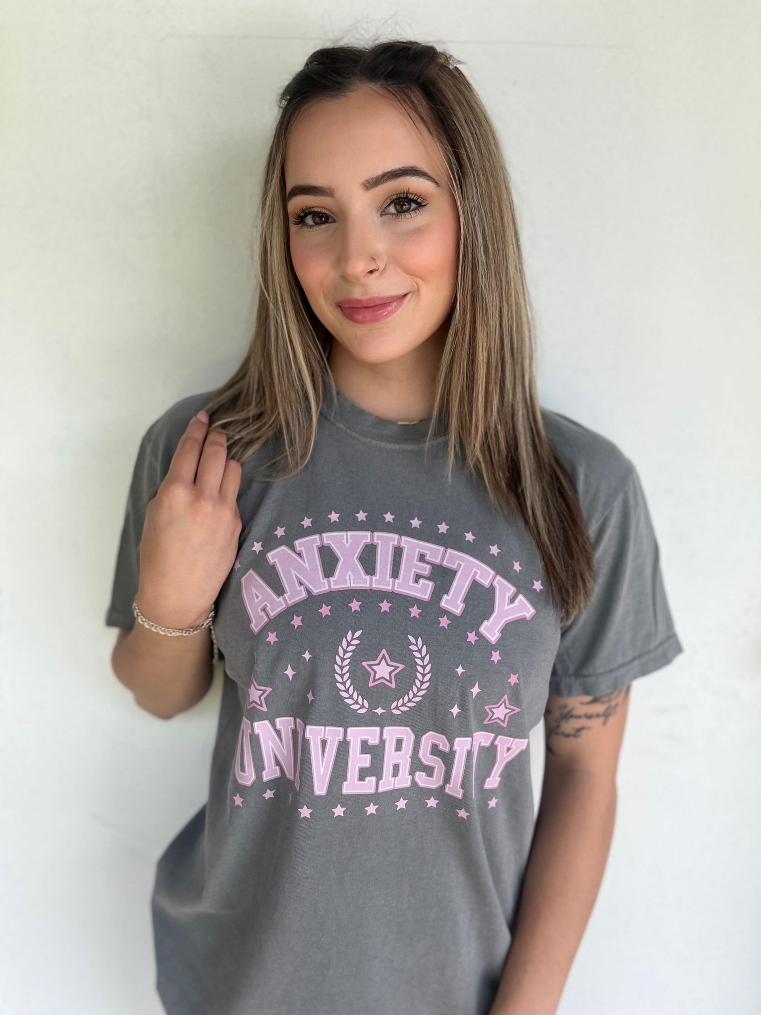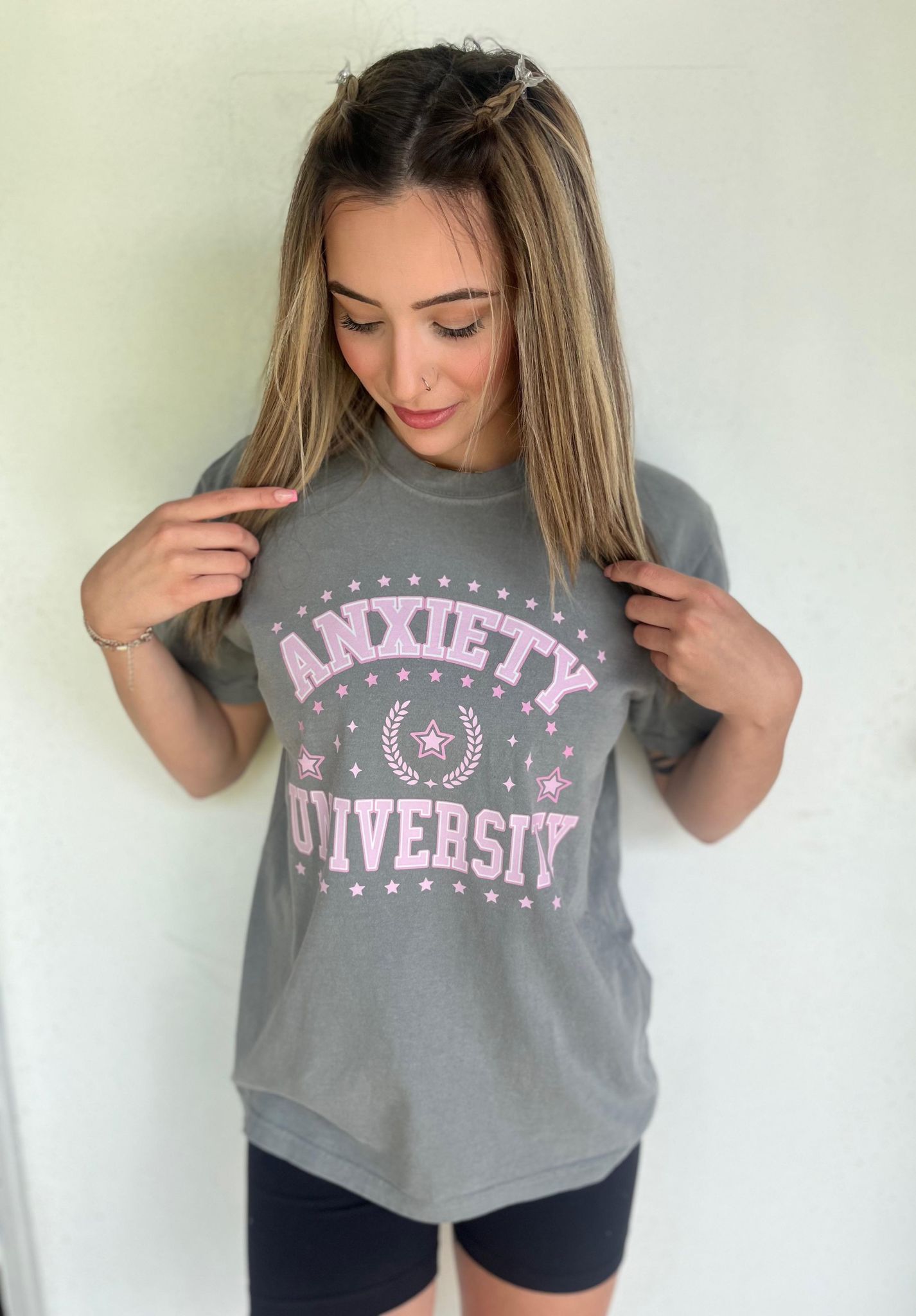 In addition to its stylish design and comfort, the Anxiety University Tee also makes a thoughtful gift for friends or family members who may be dealing with anxiety or stress. It's a unique way to show your support and understanding, making it a perfect present for birthdays, holidays, or just because.