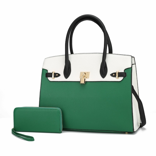 • FEATURE:  For the contemporary woman with individual style, The Annya Satchel brings all kinds of sophisticated vibes from the finest vegan leather. Design with luxurious gold-tone embellishments in summer vibrant colors and a classic lock pendant. The Annya Satchel is a go-everywhere spacious bag with one compartment that will keep all your must-haves organized. It has two slip pockets and a zip pocket inside.  The Annya Satchel has zip closure and is finished with an adjustable and removable shoulder strap and a matching wallet.