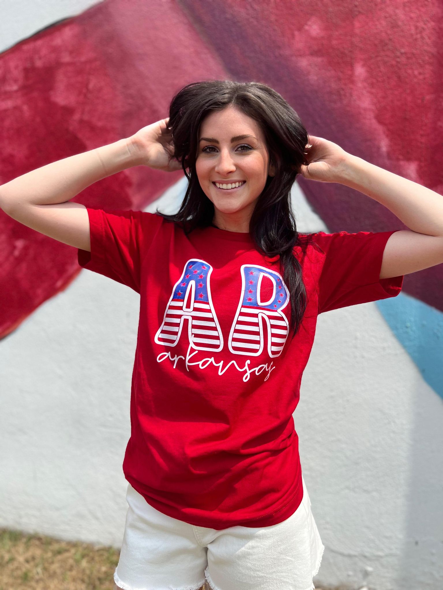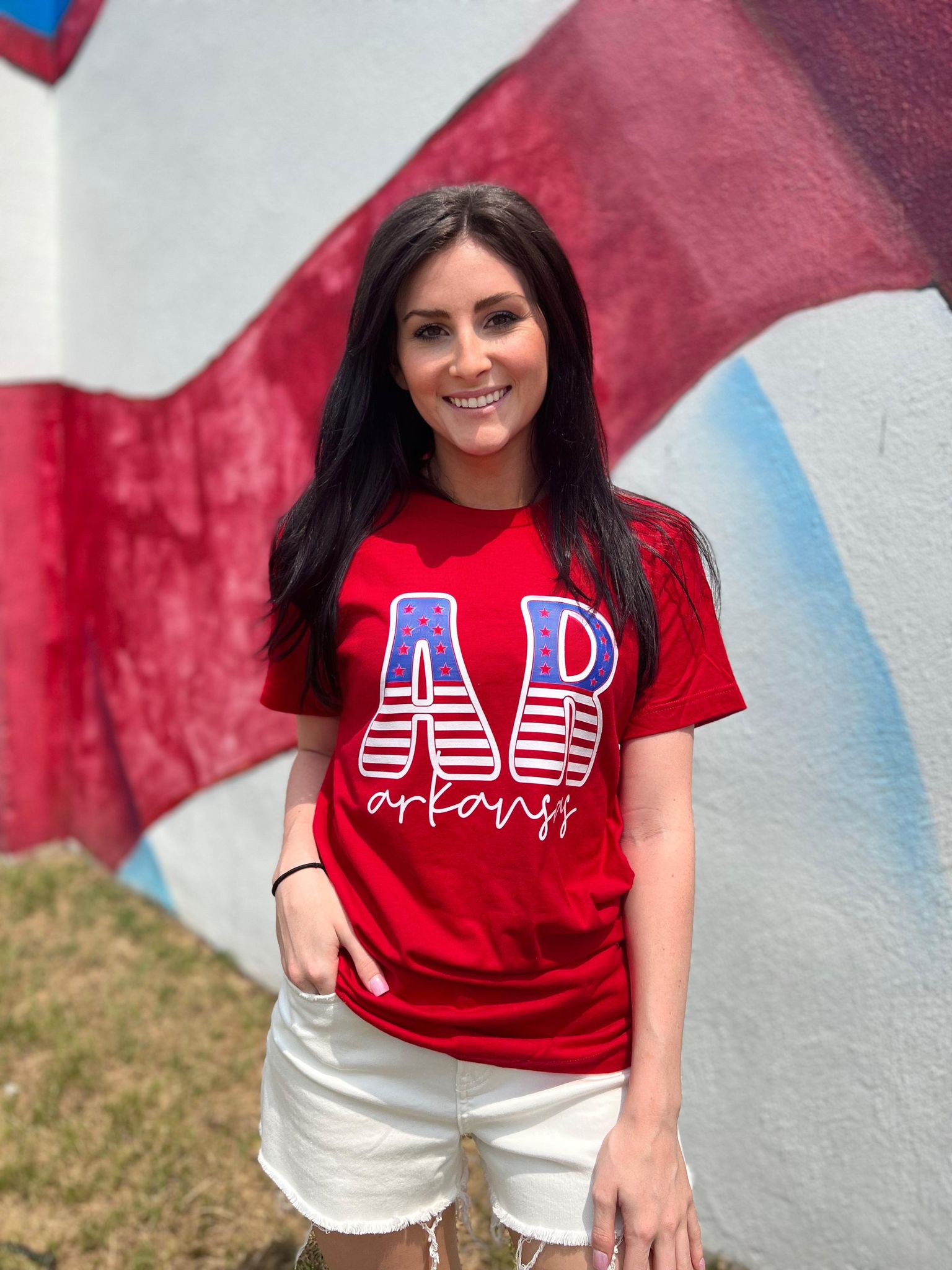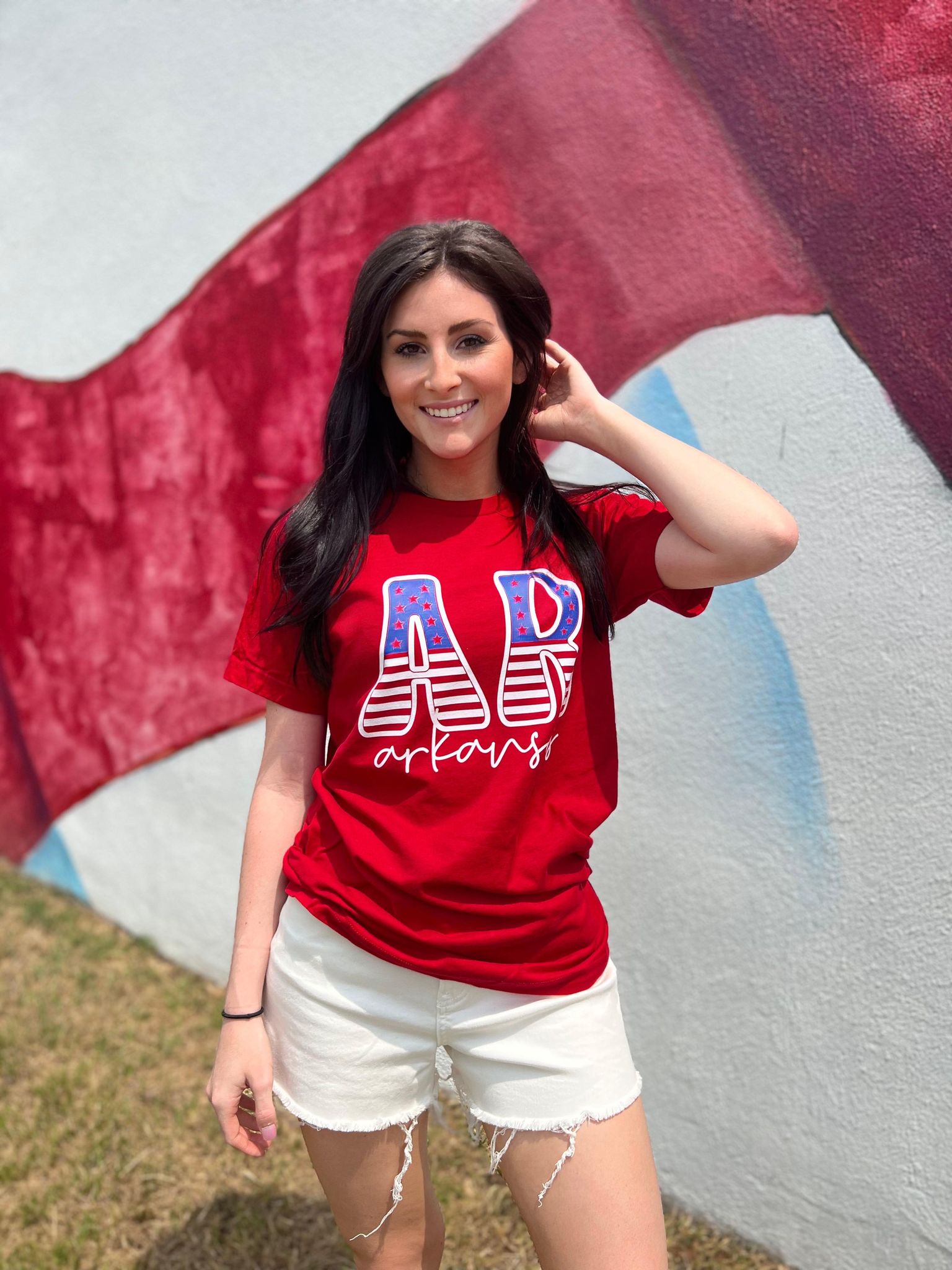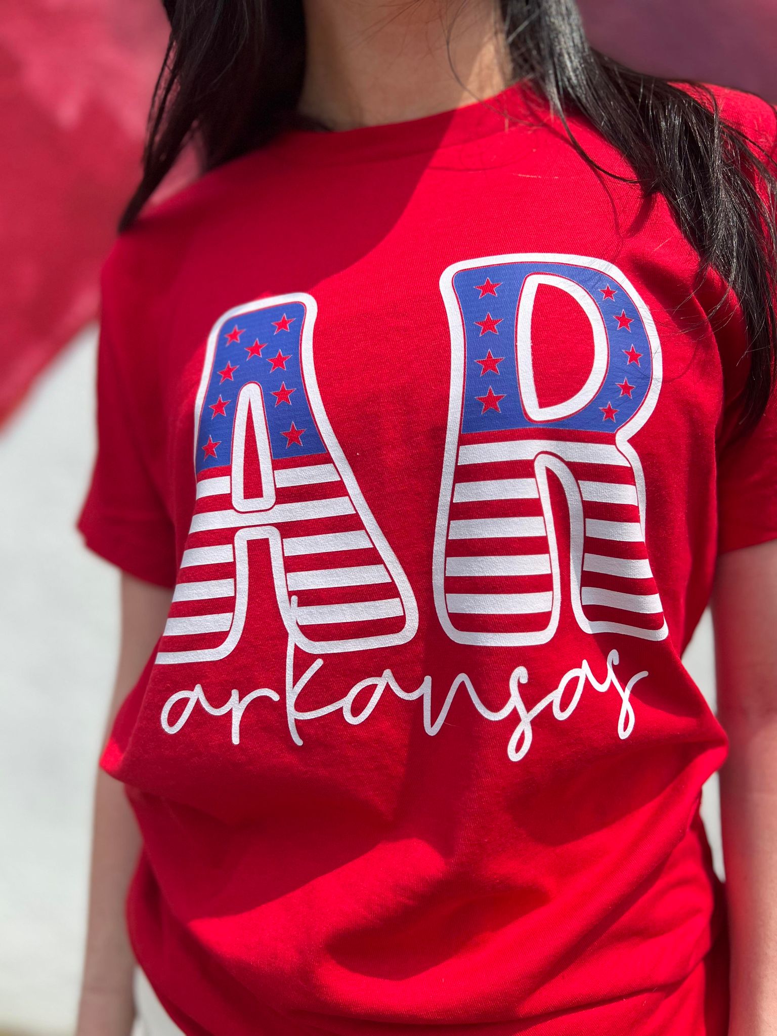 Don't miss out on the chance to showcase your Arkansas pride in style. Grab your Arkansas Stars and Stripes Tee today and be the cutest and comfiest at your next cookout or celebration!