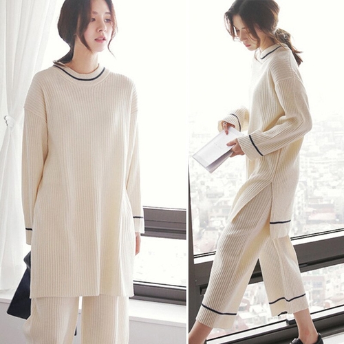 Pattern Type: Solid Material: COTTON Model Number: YS636 Material Composition: Cotton Obscene Picture: No Sexually Suggestive: No Collar: Round Neck Sleeve Length(cm): Full Length: Calf-Length Pants Season: Autumn