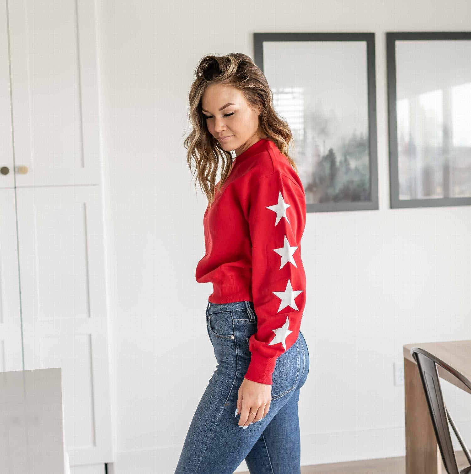 One of the best features of the Basic Fleece Sweatshirt with Star Print is its year-round wearability. Whether it's a chilly autumn day or a cool summer evening, this sweatshirt provides just the right amount of warmth without being too heavy. Layer it over a t-shirt or under a jacket for added warmth, or wear it alone for a stylish statement piece.
