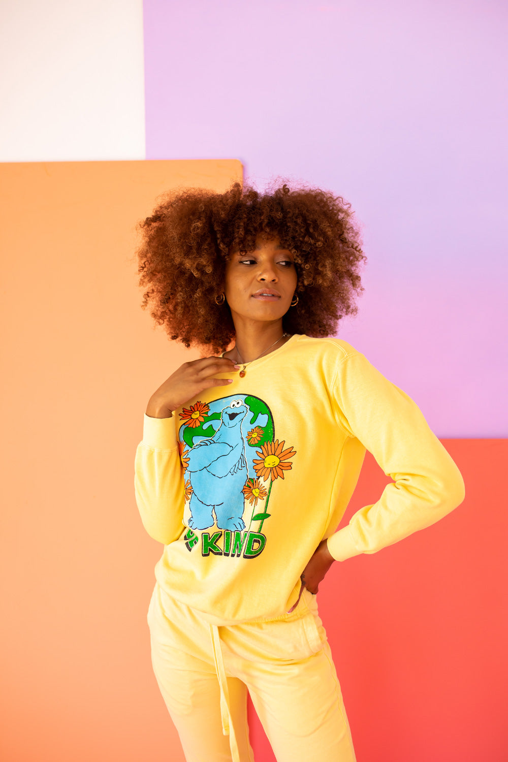 Each Be Kind Cookie Monster Sweatshirt is proudly made in Los Angeles, CA, ensuring high-quality craftsmanship and attention to detail. By choosing this sweatshirt, you are supporting local artisans and sustainable practices. The upcycled cotton used in its production not only reduces waste but also contributes to a more sustainable fashion industry.