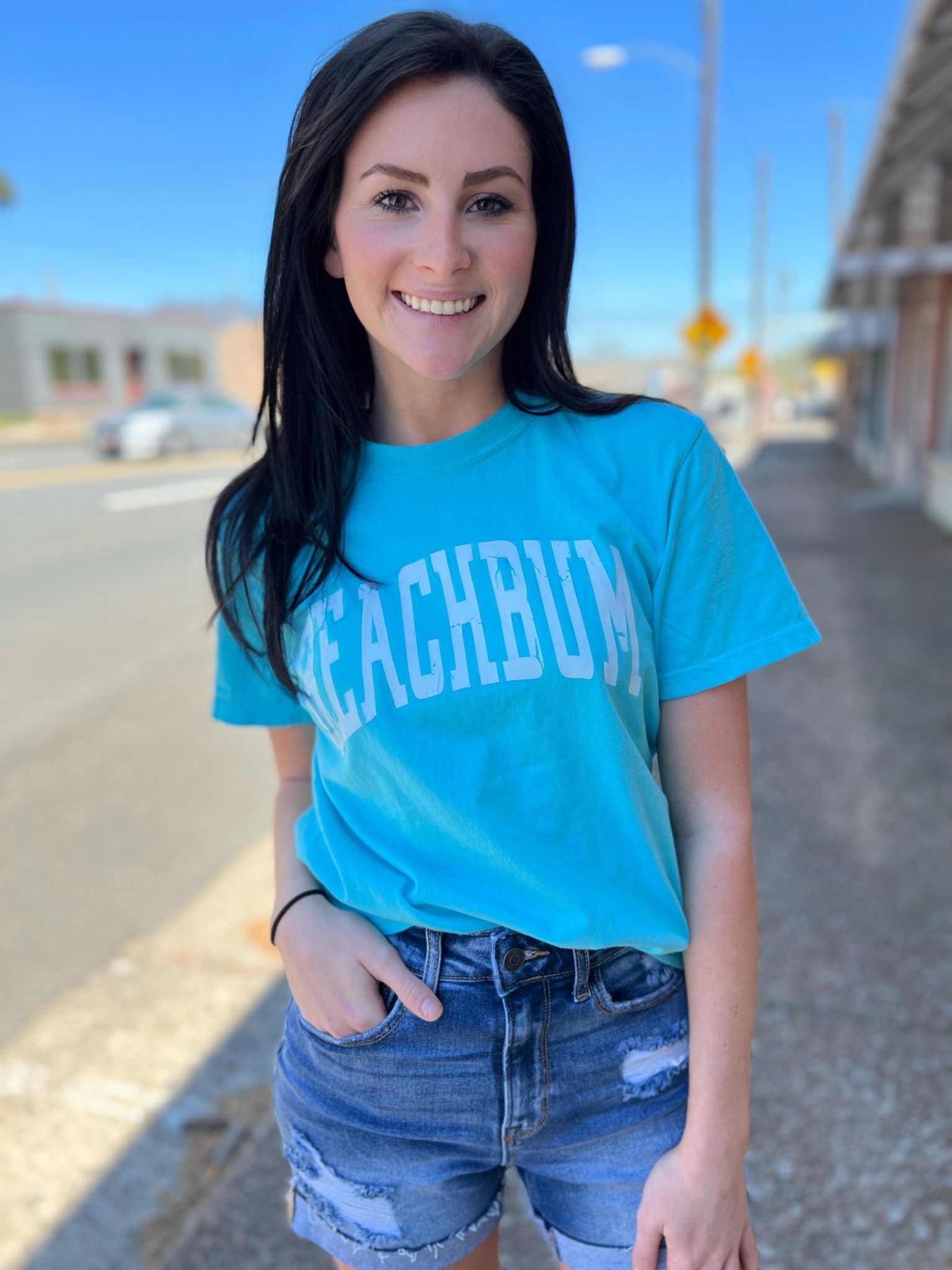 Introducing the BeachBum tee, the ultimate summer essential for beach lovers and sun seekers alike. This bright blue t-shirt is designed to make you stand out while providing the comfort you need during those hot summer days. Made from 100% cotton, this tee is soft against the skin and perfect for all-day wear, whether you're lounging on the beach, enjoying a picnic, or hitting the boardwalk.