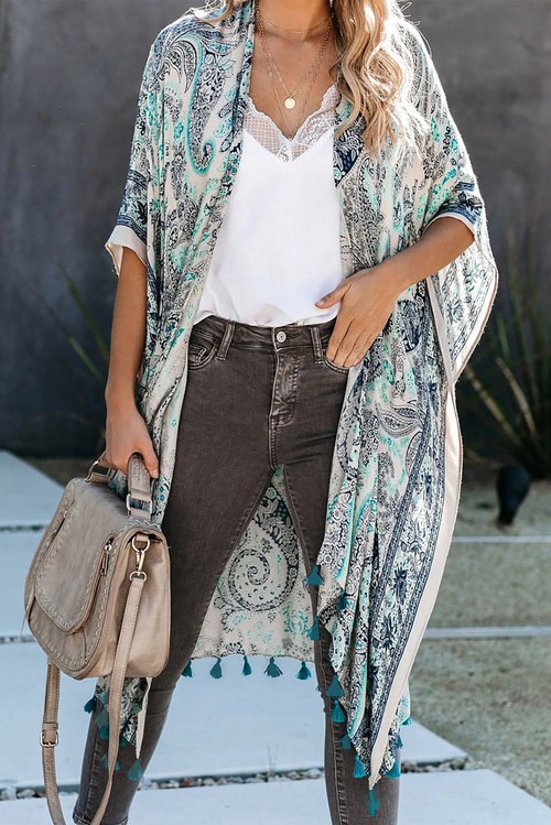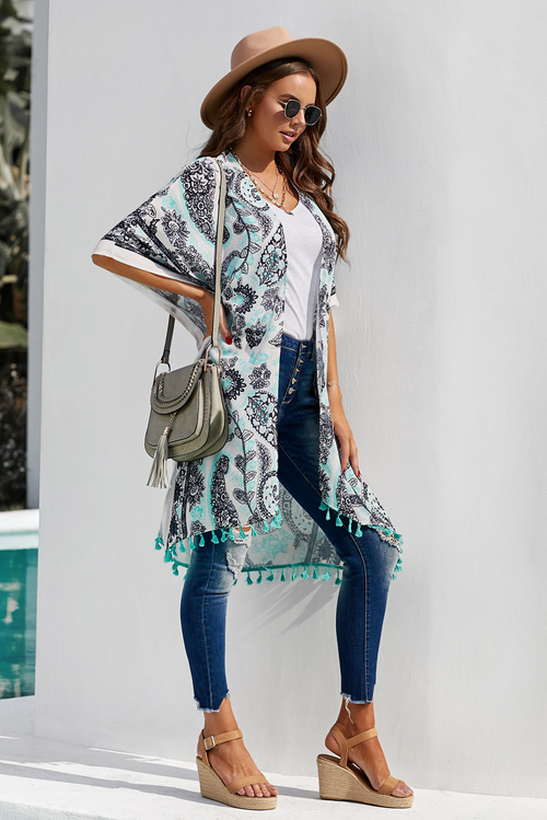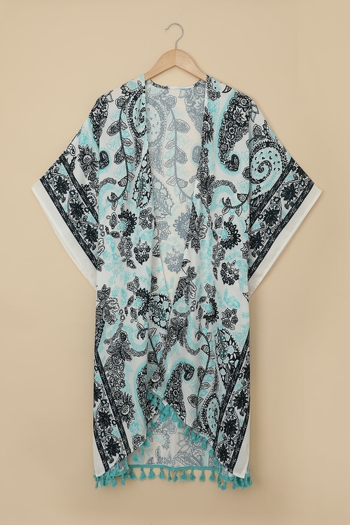 •3/4 kimono sleeve, open style and straight hemline with side slits