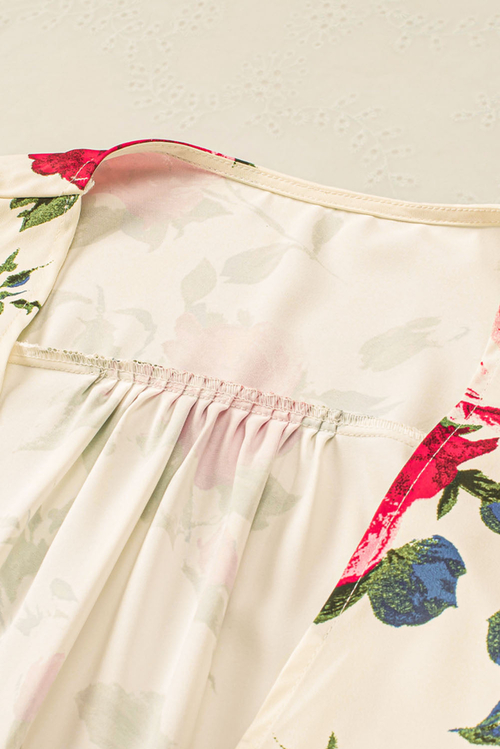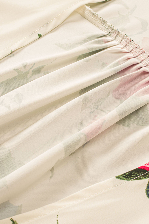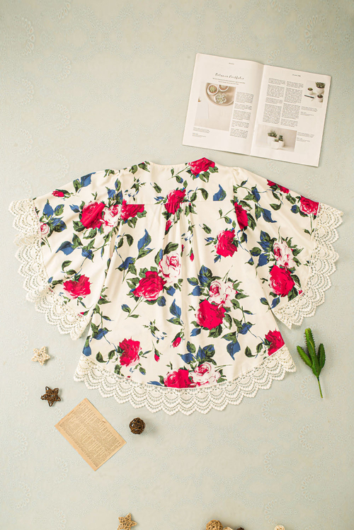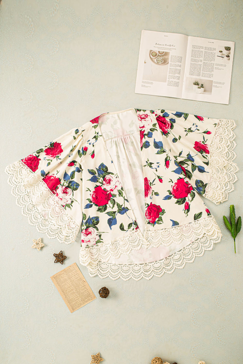Dropship Beige Floral Print Scalloped Lace Splicing Kimono