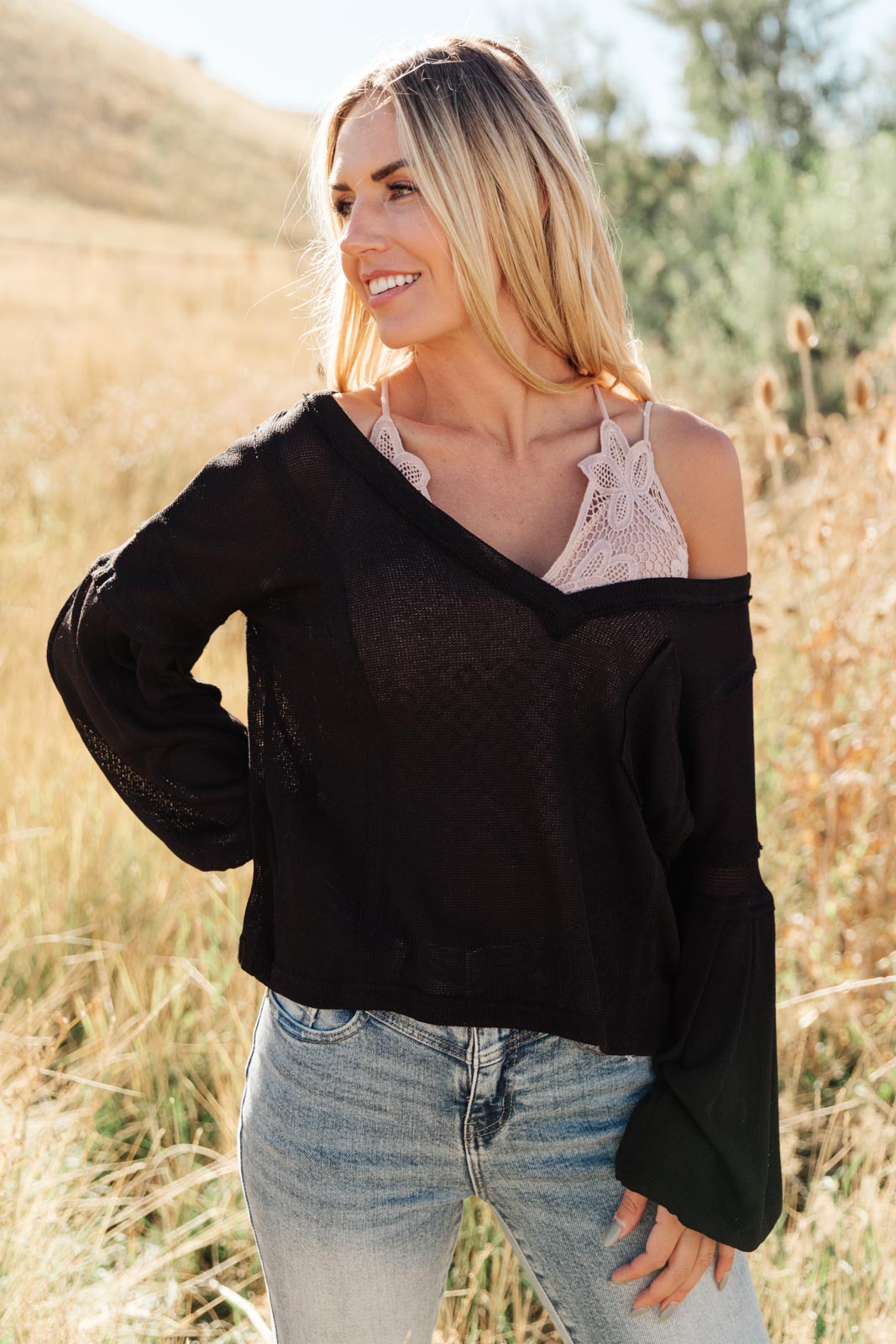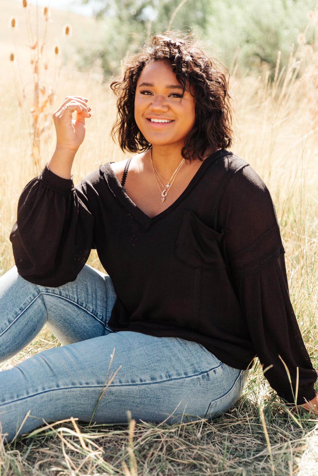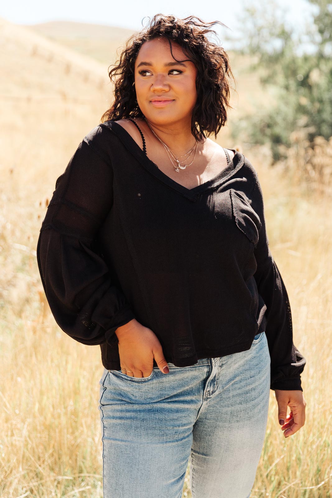 The Bellissimo Draped V-Neck Sweater in Black is an essential addition to your wardrobe, designed for versatility and comfort. This lightweight knitted top is perfect for transitioning between seasons, making it an ideal choice for both warm and cool weather. Whether you're dressing it up for a night out or keeping it casual for a day at home, this sweater is sure to elevate your style.
