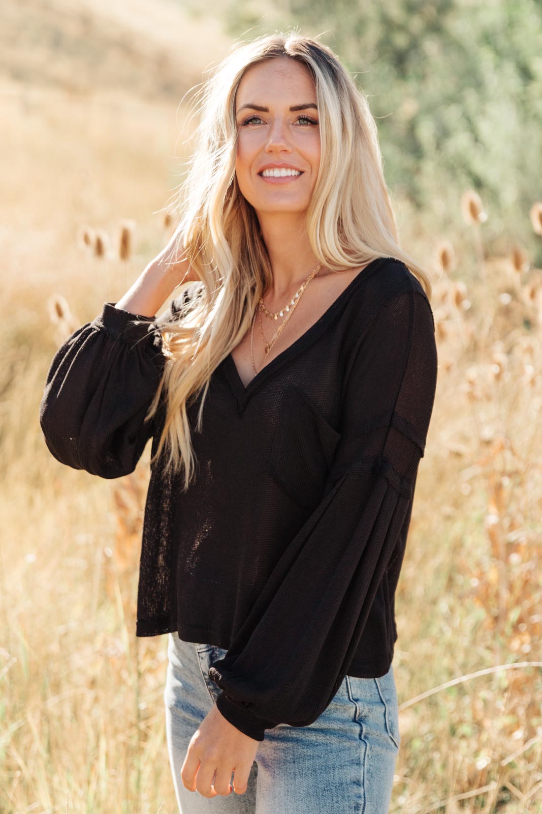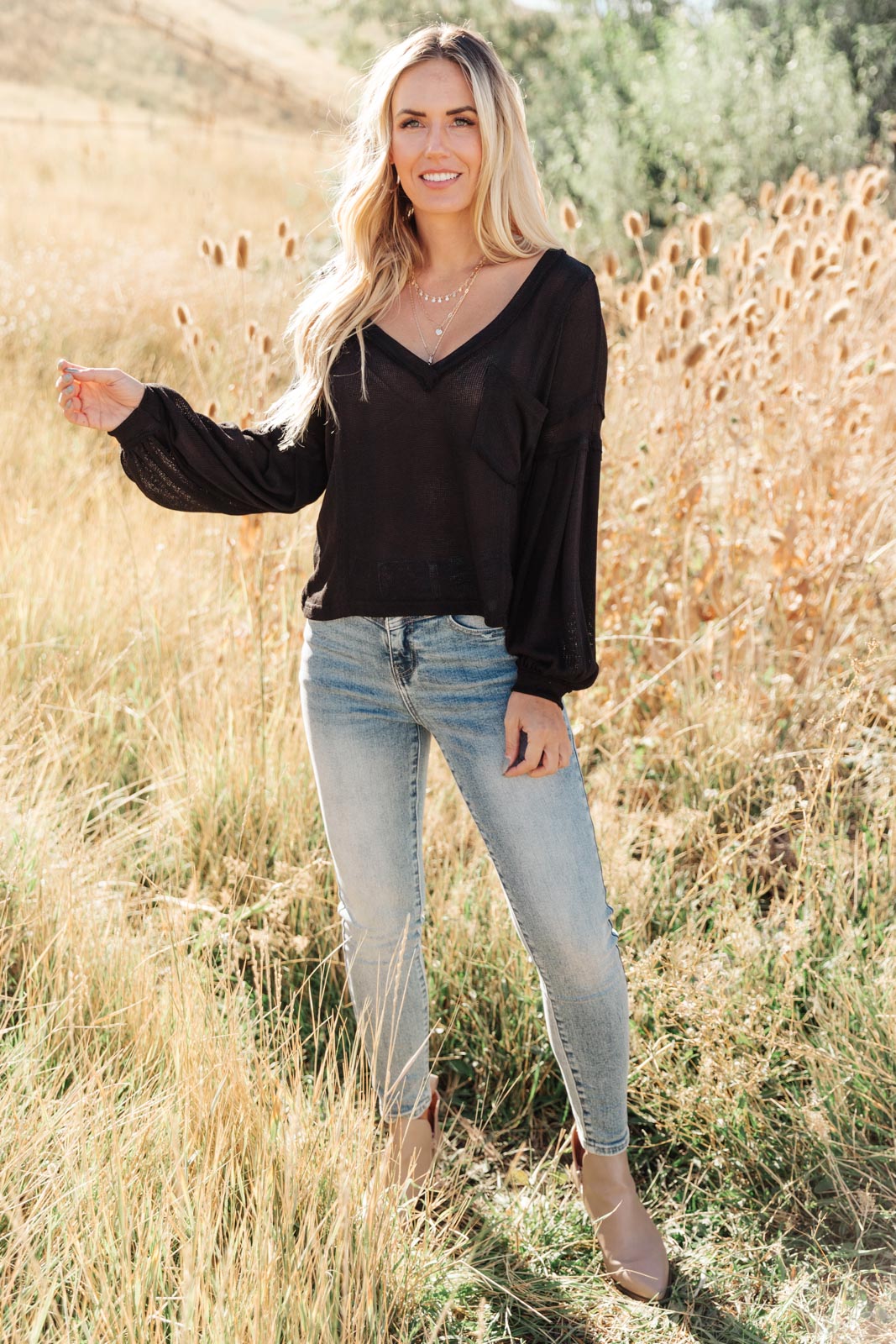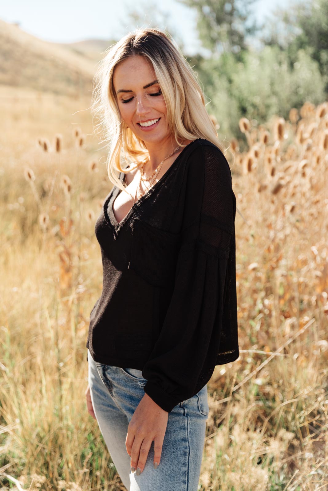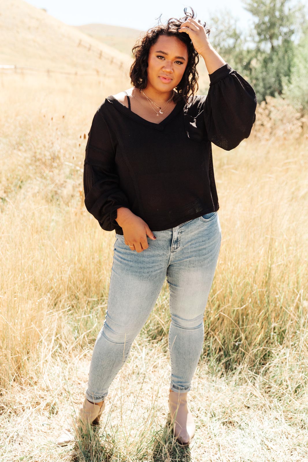 The Bellissimo Draped V-Neck Sweater in Black is an essential addition to your wardrobe, designed for versatility and comfort. This lightweight knitted top is perfect for transitioning between seasons, making it an ideal choice for both warm and cool weather. Whether you're dressing it up for a night out or keeping it casual for a day at home, this sweater is sure to elevate your style.