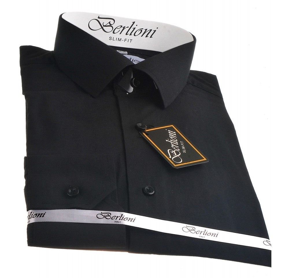 Berlioni Slim Fit Solid Shirt 155304 in a stylish design, showcasing convertible cuffs and unbreakable buttons.