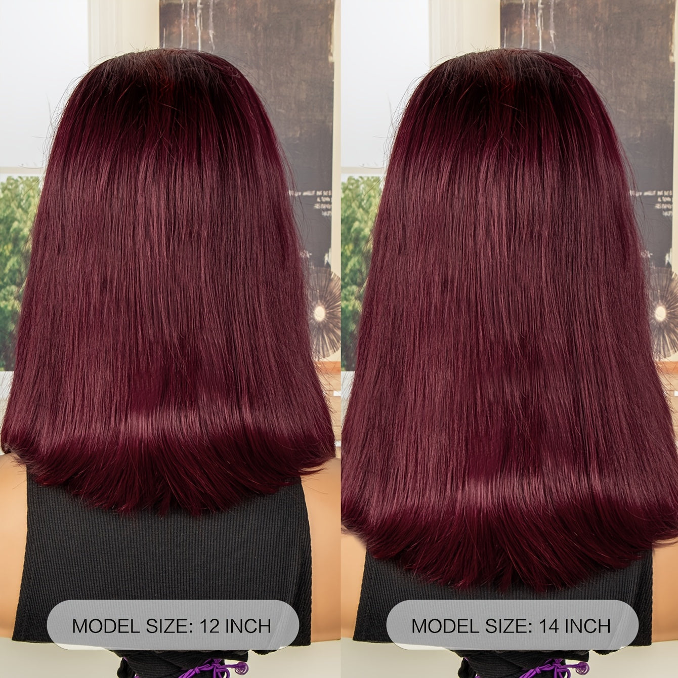 Bethany Human Hair Wig in Claret color, featuring a straight style and glueless lace front cap, perfect for women seeking volume and elegance.
