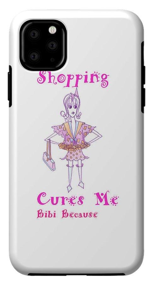 Introducing the Bibi Because Shopping Cures Me phone case, a stylish and functional accessory designed specifically for the iPhone 11. Created by the talented artist Sharon Tatem, this phone case not only offers superior protection but also showcases a unique design that resonates with shopping lovers. The phrase 'Shopping Cures Me' is a playful nod to the joy of retail therapy, making it a perfect gift for yourself or a friend who shares the same passion.