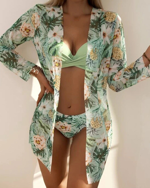 Dropship Bikini New Swimsuit Three-Piece Mesh Shawl Blouse Kimono Split Print B