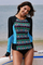 Dropship Black Blue Color Block Tribal Print Rashguard Top