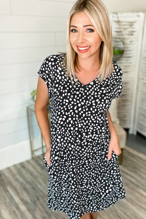 •A fashion dot print dress with pockets is classic and a must-have in women's wardrobe as daily wear
