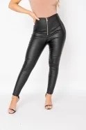 Crafted from a blend of 95% polyester and 5% elastane, these faux leather jeggings offer both comfort and style. The PU coating gives them a chic, edgy look that is perfect for fashion-forward individuals. The exposed zip detail adds a unique touch, making these trousers stand out in any outfit.