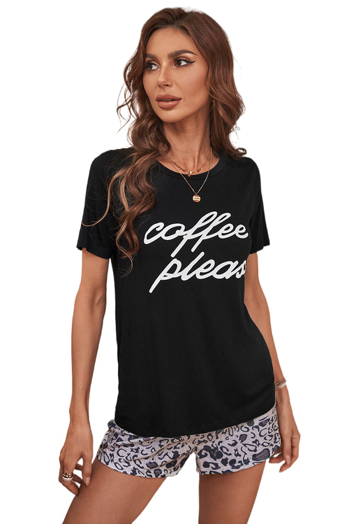 •Rounded neckline short sleeves tee printed with "coffee please" graphic on top