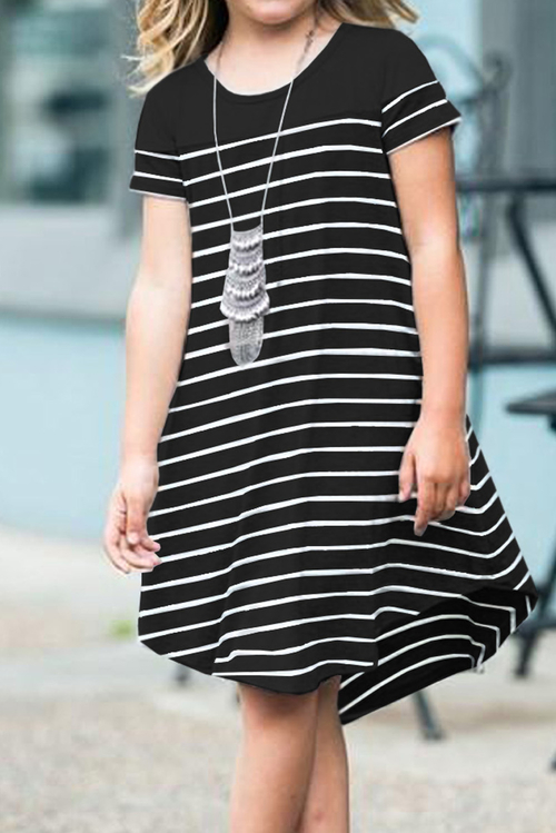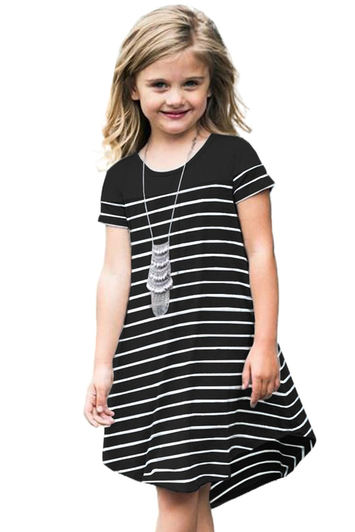 •This girls’ dress has a round neck, short sleeves and comfy fit shape