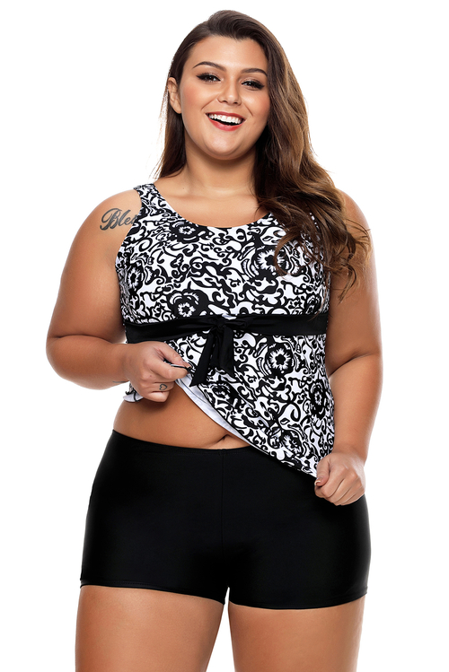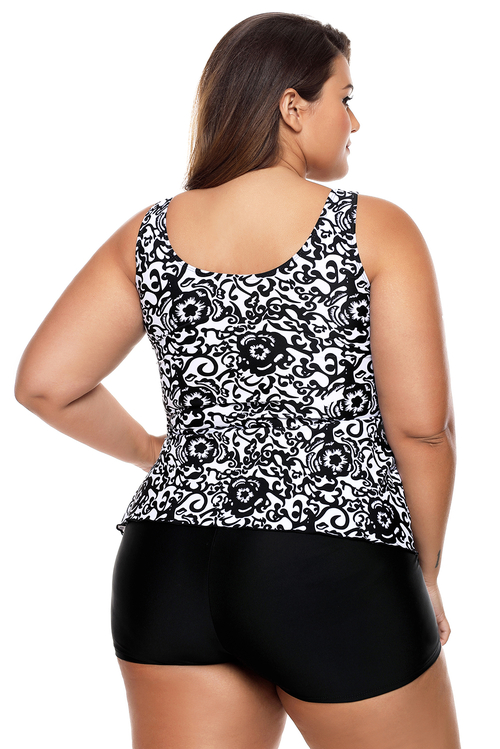 •Two-piece swimsuit including tankini top and boyshort bottom