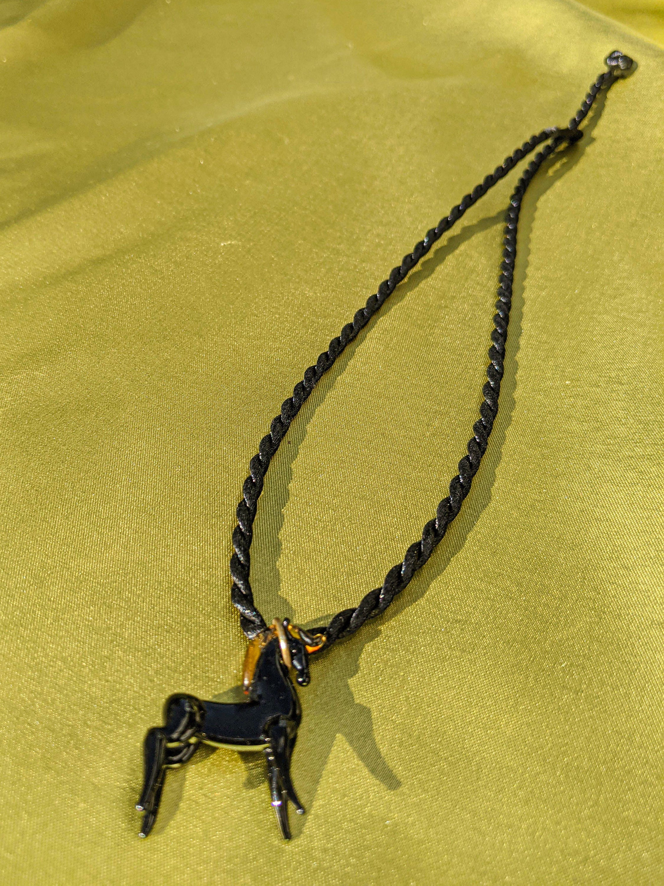 This necklace is not just a piece of jewelry; it's a statement of style and personality. The combination of the black rope and glass horse creates a striking contrast that draws attention and sparks conversations. Whether you're a horse enthusiast or simply someone who appreciates unique accessories, this necklace is a must-have addition to your collection.