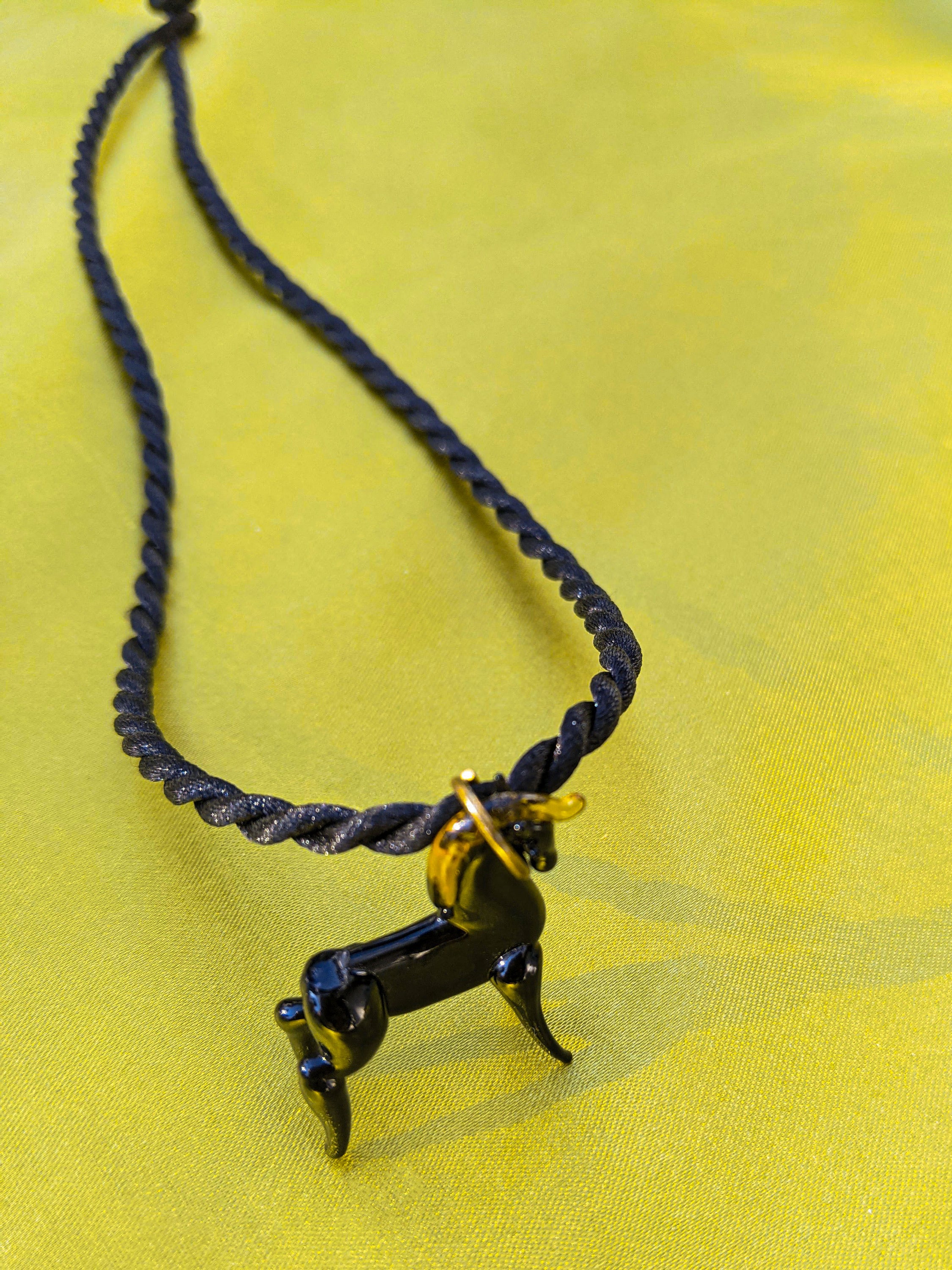 Introducing our exquisite black rope necklace with a glass horse pendant, a perfect blend of elegance and uniqueness. This stunning piece of jewelry is designed for those who appreciate the beauty of equestrian art and want to showcase their love for horses in a fashionable way. The necklace features a durable black rope that adds a touch of sophistication, while the glass horse pendant serves as a captivating focal point.