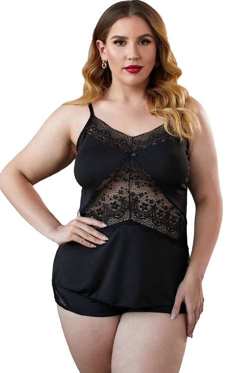 •Solid color shorts also adorned with lace, elastic waist