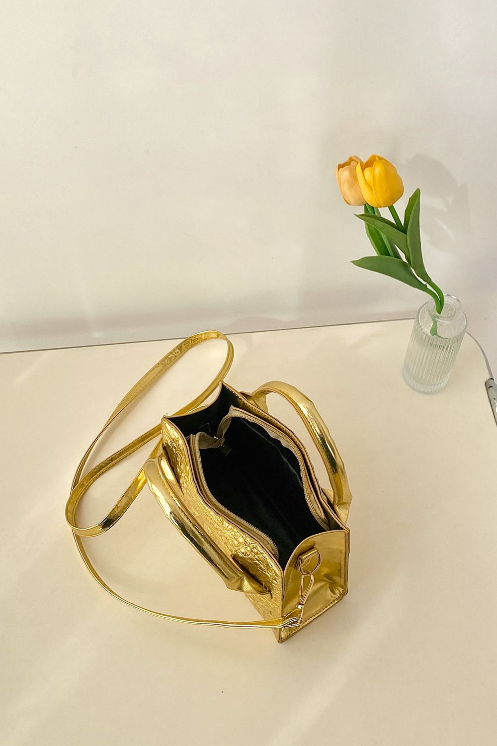 Crafted from PU leather, this bag offers a luxurious look and feel without the high price tag. PU leather is known for its durability and ease of maintenance, making it a practical choice for everyday use. Simply wipe it clean with a damp cloth to keep it looking fresh and new.