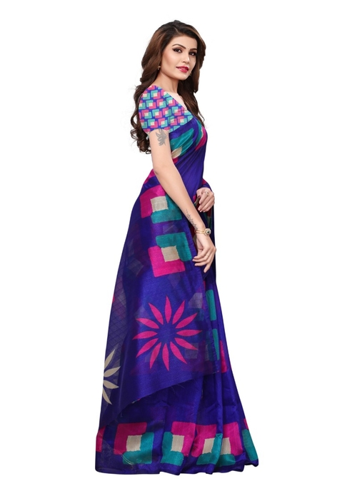 Blue Color Printed Bhagalpuri Silk SareeWith Blouse.